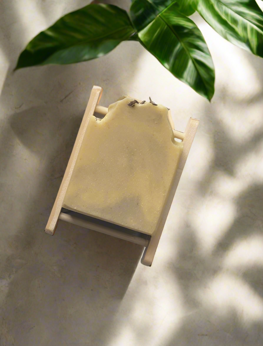 Calming goat milk & tallow bar scented with organic lavender essential oil.